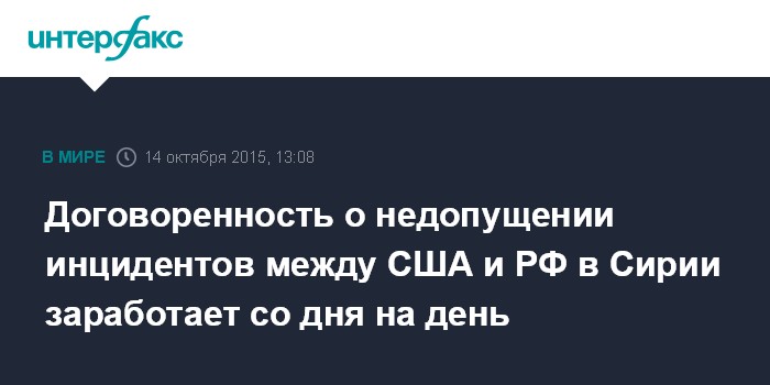 Москва. 14 октября. INTERFAX.RU - Российско-американские договоренности о военно-технических мерах по недопущению инцидентов в воздушном пространстве Сирии должны заработать в самое ближайшее время, заявил глава МИД РФ Сергей Лавров.