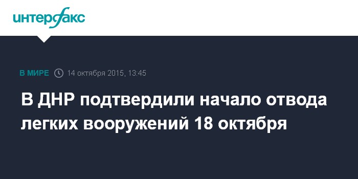 В ДНР подтвердили начало отвода легких вооружений 18 октября