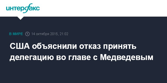 Москва. 14 октября. INTERFAX.RU - Американская администрация не увидела необходимости в контактах с делегацией во главе с премьером РФ Дмитрием Медведевым, так как не считает, что Россия вносит конструктивный вклад в борьбу против экстремистов ИГ, заявил в среду представитель Белого дома Джош Эрнест.