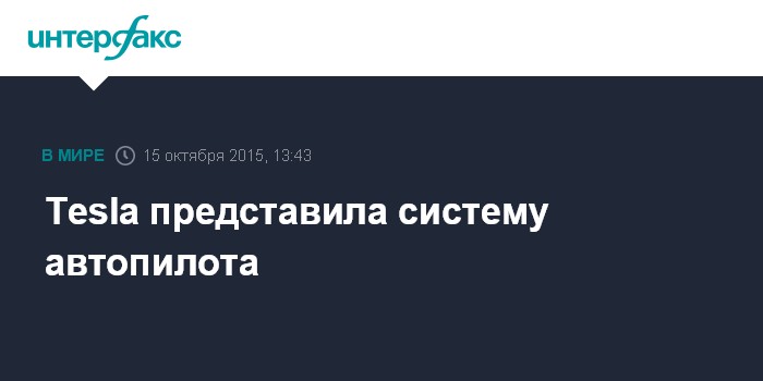 Москва. 15 октября. INTERFAX.RU - Tesla Motors представила систему автопилота, с помощью которой машина сможет автономно двигаться по городской дороге с разметкой и на магистрали, сообщается на сайте компании.