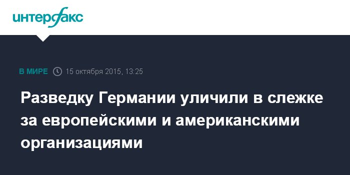 Москва. 15 октября. INTERFAX.RU - Федеральная разведывательная служба ФРГ (BND) вела слежку за учреждениями стран ЕС и США, сообщает в четверг немецкий журнал Der Spiegel.