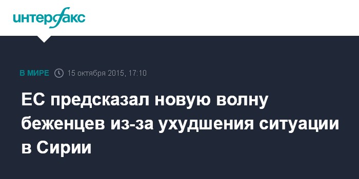 Москва. 15 октября. INTERFAX.RU - Евросоюз готовится к новой волне беженцев из-за ухудшения ситуации в Сирии.
