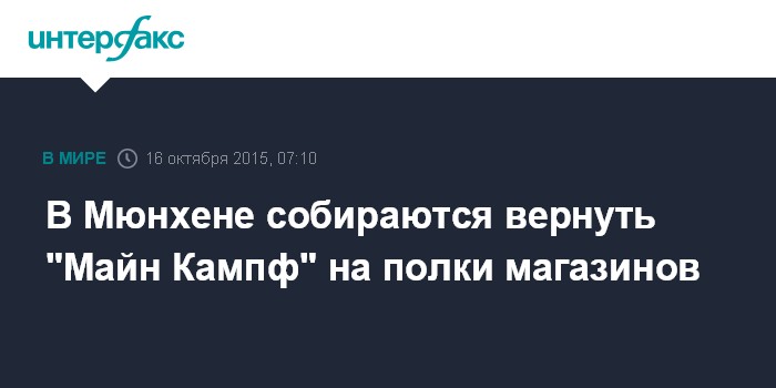 Москва. 16 октября. INTERFAX.RU - Спустя 70 лет манифест Адольфа Гитлера "Майн Кампф" может вернуться в продажу книжных магазинов Германии, сообщает NBC News.