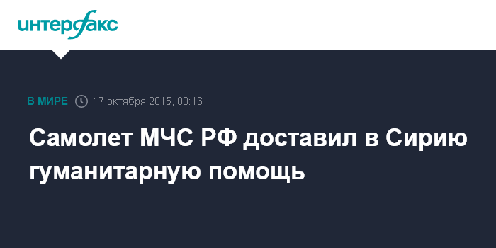 Самолет МЧС РФ доставил в Сирию гуманитарную помощь