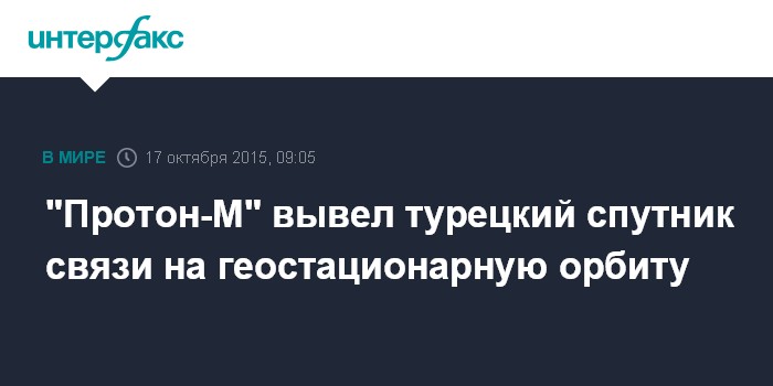 Москва. 17 октября. INTERFAX.RU - Пуск ракеты-носителя "Протон-М" завершился успешным выведением спутника связи TurkSat-4B на геостационарную орбиту, сообщил "Интерфаксу" представитель Роскомоса.