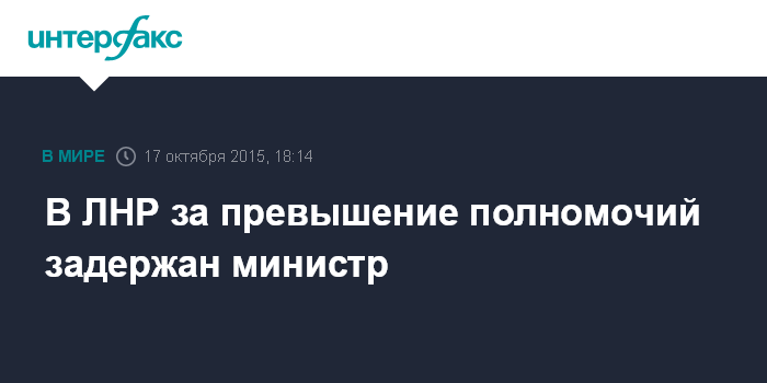 Москва. 17 октября. INTERFAX.RU - Сотрудники правоохранительных органов самопровозглашенной Луганской народной республики с санкции главы ЛНР Игоря Плотницкого задержали в Луганске министра топлива, энергетики и угольной промышленности ЛНР Дмитрия Лямина, сообщили в пресс-службе Министерства государственной безопасности республики.