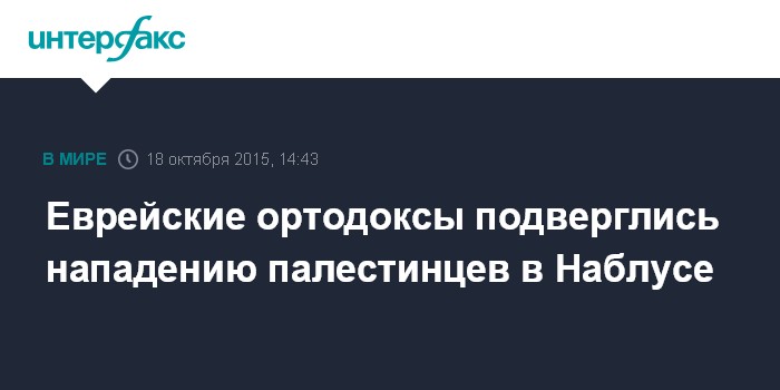 Москва. 18 октября. INTERFAX.RU - Палестинцы в воскресенье совершили нападение на группу из 30 еврейских ультраортодоксов, которые без разрешения пришли на почитаемую иудеями могилу Иосифа в городе Наблусе на севере Западного берега реки Иордан.