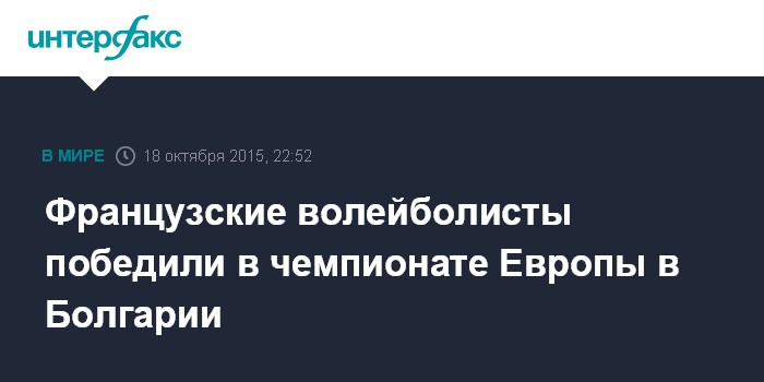 Москва. 18 октября. INTERFAX.RU - Мужская сборная Франции по волейболу обыграла Словению в финале чемпионата Европы в Софии.