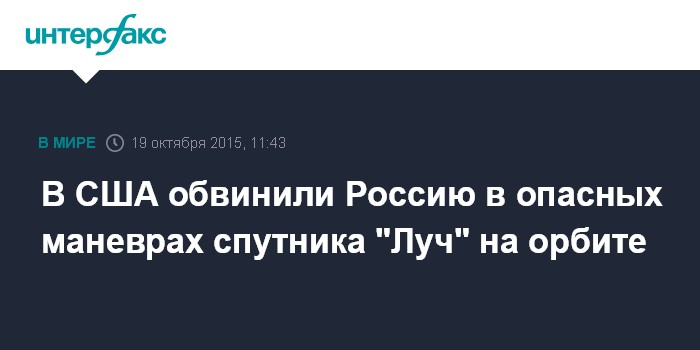 "Русский спутник, известный под названием "Луч" или "Олимп", запущенный в сентябре 2014 года, семь месяцев спустя занял (на геостационарной орбите) позицию между спутниками "Интелсат-7" (18,2 градуса з.д.) и "Интелсат-901" (18 градусов з.д.). В конце сентября он совершил новый маневр и занял точку 24,4 градуса з.д., рядом со спутником "Интелсат-905" (24,5 градуса з.д.)", - сообщает издание.