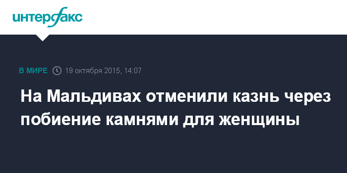 Москва. 19 октября. INTERFAX.RU - Верховный суд Мальдив отменил приговор женщине, согласно которому она должна была быть забита камнями до смерти по обвинению в супружеской измене, сообщает в понедельник BBC со ссылкой на местные СМИ.