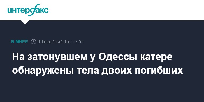 Москва. 19 октября. INTERFAX.RU - Тела как минимум двоих погибших обнаружены на борту поднятого на поверхность катера "Иволга", затонувшего в районе населенного пункта Затока Одесской области. Об этом говорится в сообщении, обнародованном в понедельник на странице Мининфраструктуры в фейсбуке.