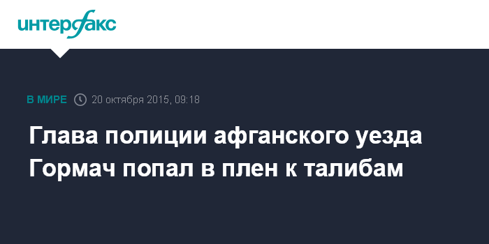 Глава полиции афганского уезда Гормач попал в плен к талибам