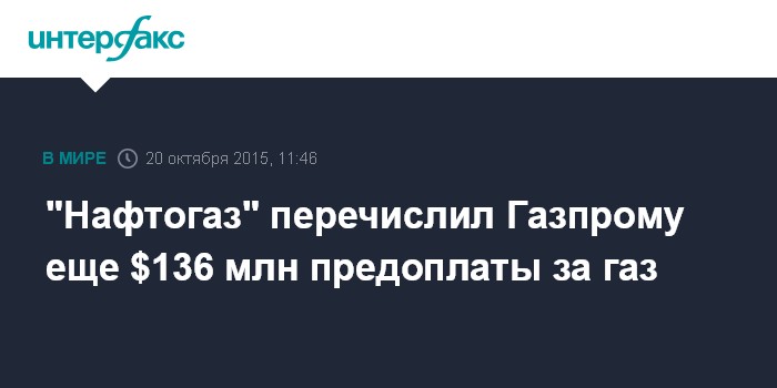 "Они ("Нафтогаз" - ИФ) уже доплатили еще 136 млн долларов", - сказал он журналистам в Киеве вторник.