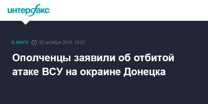 Москва. 20 октября. INTERFAX.RU - Украинские военнослужащие совершили атаку на окраину Донецка, она была отбита, заявили в министерстве обороны самопровозглашенной Донецкой народной республики.