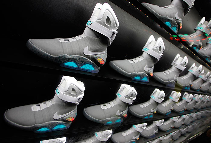 В интернете сразу же появилось предположение, что Nike представит публике новую модель кроссовок, полностью имитирующую самозашнуровывающиеся кроссовки главного героя фильма Марти Макфлая - Nike Air MAG.