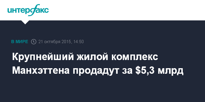 Крупнейший жилой комплекс Манхэттена продадут за $5,3 млрд