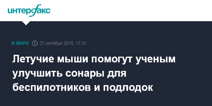 Москва. 21 октября. INTERFAX.RU - Ученые полагают, что исследования эхолокации летучих мышей позволят значительно улучшить сонары для беспилотных летательных аппаратов, автомобилей или подводных лодок, пишет сайт N+1 со ссылкой на сообщение Национального научного фонда (National Science Foundation, NSF - независимое агентство при правительстве США - ИФ).