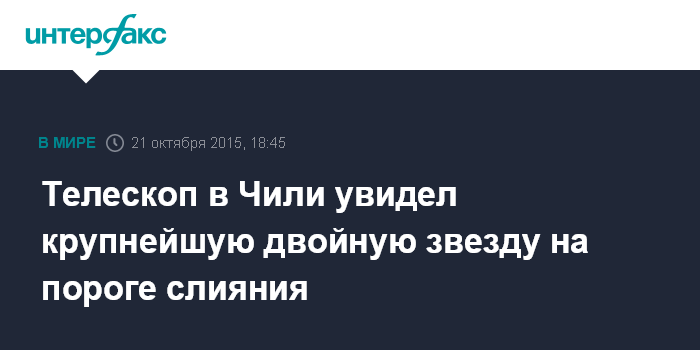 Телескоп в Чили увидел крупнейшую двойную звезду на пороге слияния