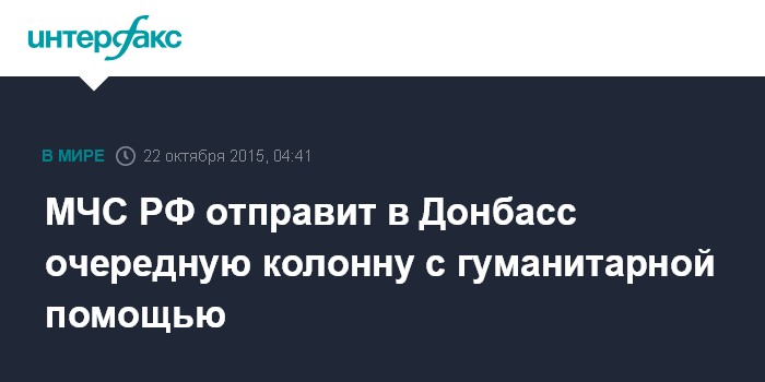 Москва. 22 октября. INTERFAX.RU - МЧС России направляет в Донбасс автоколонну с гуманитарной помощью.
