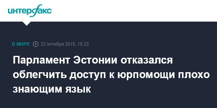 Москва. 22 октября. INTERFAX.RU - Парламент Эстонии на заседании в четверг снял с обсуждения предложение фракции крупнейшей в Эстонии оппозиционной партии Центра об облегчении подачи заявлений о правовой помощи лицами, не владеющими эстонским языком.