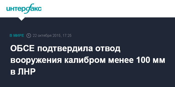 Москва. 22 октября. INTERFAX.RU - Миссия ОБСЕ подтвердила завершение отвода военной техники и вооружений калибра менее 100 мм от линии соприкосновения милицией непризнанной Луганской народной республики.