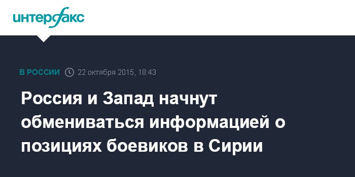 Москва. 22 октября. INTERFAX.RU - Москва близка к тому, чтобы начать обмениваться с Западом информацией о позициях и передвижениях боевиков в Сирии, заявил президент Владимир Путин.