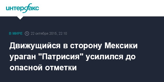 Движущийся в сторону Мексики ураган "Патрисия" усилился до опасной отметки
