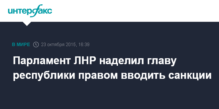 Москва. 23 октября. INTERFAX.RU - Депутаты Народного совета самопровозглашенной ЛНР в первом и втором чтениях и приняли закон "О специальных экономических и иных санкциях".