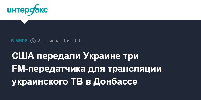 Москва. 23 октября. INTERFAX.RU - США 23 октября передали Украине первую партию FM-радиопередатчиков с целью улучшения трансляции украинских телеканалов на востоке Украины.