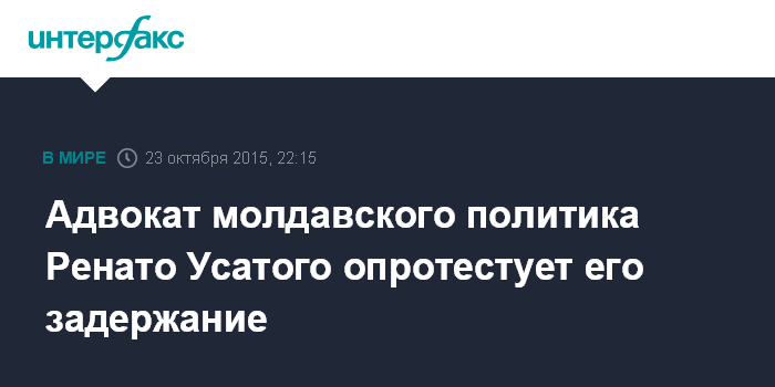 Москва. 23 октября. INTERFAX.RU - Адвокат лидера молдавской партии "Наша партия" Ренато Усатого Анна Урсаки считает, что политик был задержан незаконно.