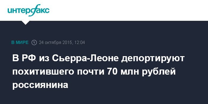 В РФ из Сьерра-Леоне депортируют похитившего почти 70 млн рублей россиянина