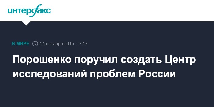 Москва. 24 октября. INTERFAX.RU - Президент Украины Петр Порошенко поручил создать Центр исследований проблем Российской Федерации в составе Национального института стратегических исследований.