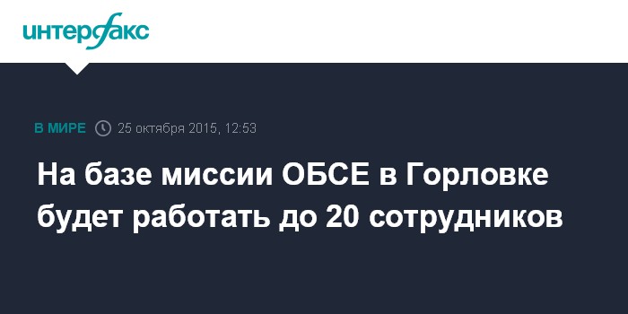 Москва. 25 октября. INTERFAX.RU - В Специальной мониторинговой миссии ОБСЕ заявляют, что в ее новом офисе в Горловке будут находиться до двух десятков человек.