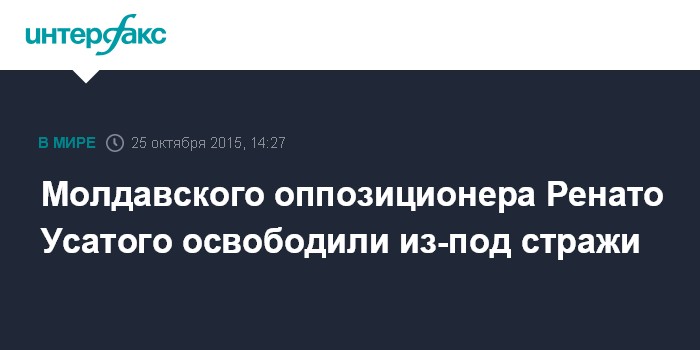 Москва. 25 октября. INTERFAX.RU - Молдавского политика, лидера "Нашей парии" Ренато Усатого решением суда освобожден из-под ареста.