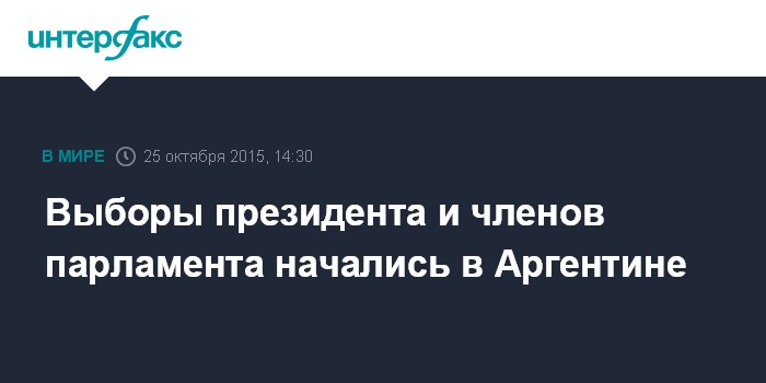 Москва. 25 октября. INTERFAX.RU - Избирательные участки на президентских и парламентских выборах открылись в 08:00 по местному времени (14:00 по Москве) в Аргентине.