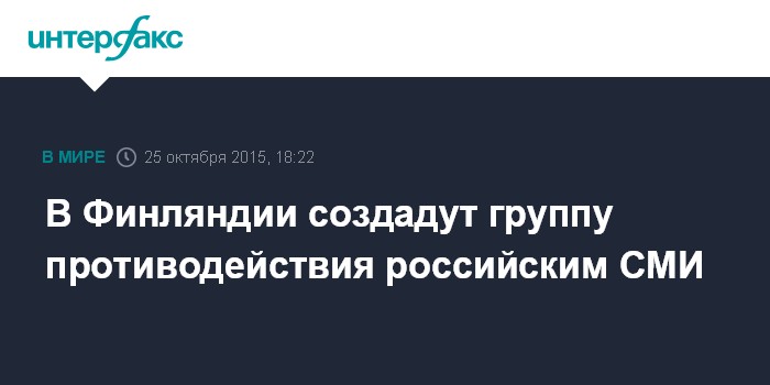 Москва. 25 октября. INTERFAX.RU - В Финляндии из представителей канцелярии Государственного совета и различных министерств создается специальная группа, задачей которой является поиск методов и способов противодействия российским средствам массовой информации.