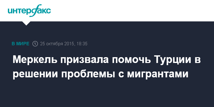 Москва. 25 октября. INTERFAX.RU - Страны центральной и восточной Европы без Турции не смогут самостоятельно решить проблему с мигрантами, заявила канцлер Германии Ангела Меркель.