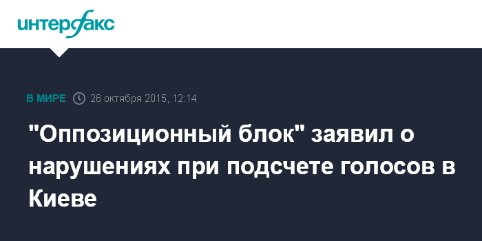 Москва. 26 октября. INTERFAX.RU - В украинской партии "Оппозиционный блок" заявляют о фальсификациях при подсчете голосов на участках на выборах в Киевский городской совет.