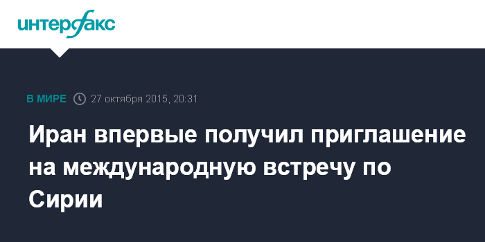 Москва. 27 октября. INTERFAX.RU - Иранские власти впервые получили приглашение принять участие в международных переговорах по мирному решению сирийского кризиса, сообщает во вторник агентство Associated Press со ссылкой на американских официальных лиц.
