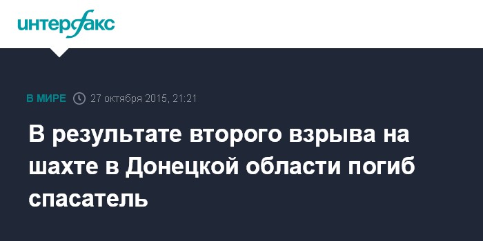 Москва. 27 октября. INTERFAX.RU - На шахте "Краснолиманская", расположенной в Красноармейском районе Донецкой области, во вторник произошел взрыв, в результате которого погиб спаситель, еще двое получили тяжелые ранения, сообщает пресс-служба регионального главка МВД Украины.