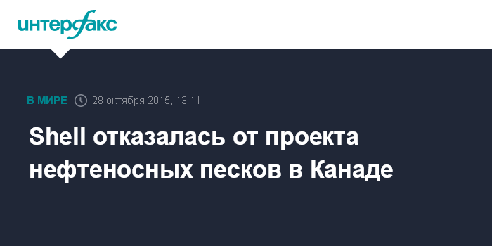 Москва. 28 октября. INTERFAX.RU - Нефтегазовая компания Royal Dutch Shell Plc отказывается от плана разработки проекта нефтеносных песков Carmon Creek в канадской провинции Альберта и спишет $2 млрд, сообщается в пресс-релизе компании.