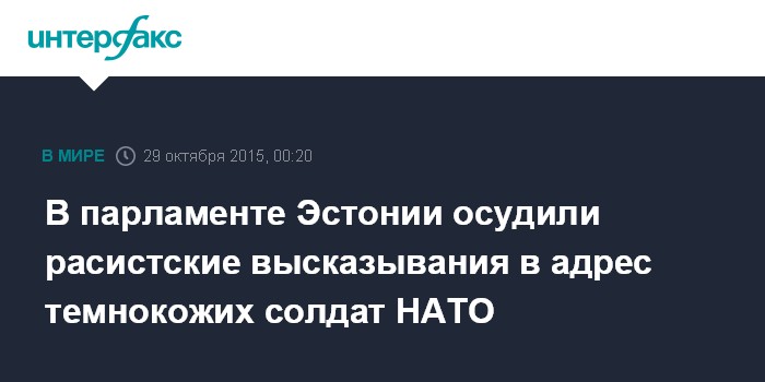 Москва. 29 октября. INTERFAX.RU - Председатель комиссии по иностранным делам парламента Эстонии, бывший министр обороны Свен Миксер (Sven Mikser) осудил расистские высказывания в адрес темнокожих солдат НАТО.