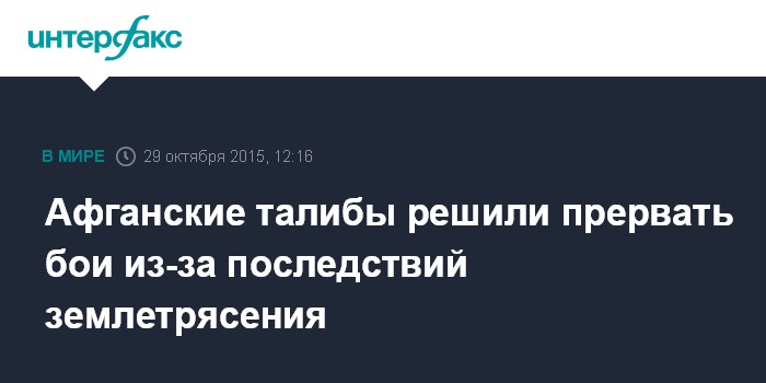 Москва. 29 октября. INTERFAX.RU - Представитель действующих в Афганистане талибов Забиулла Муджахид заявил, что движение решило временно прекратить огонь на территориях, затронутых разрушительным землетрясением, сообщают в четверг западные СМИ.