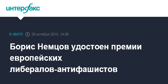 Москва. 29 октября. INTERFAX.RU - Российский политик Борис Немцов посмертно удостоен международной премии Жана Рея, учрежденной в 2004 году европейскими либеральными деятелями.