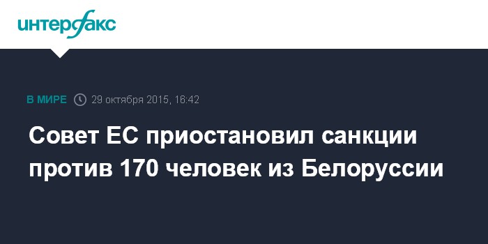 В коммюнике уточняется, что ограничительные меры против белорусских лиц и организаций должны были истечь 31 октября. Совет ЕС продлил эти меры до 29 февраля 2016 года, и в то же время приостановил их действие на 170 человек и трех юридических лиц. Четыре физических лица, вовлеченные в нерасследованные исчезновения в Белоруссии, остаются объектом ограничительных мер. Продолжает применяться эмбарго на поставки оружия в страну.