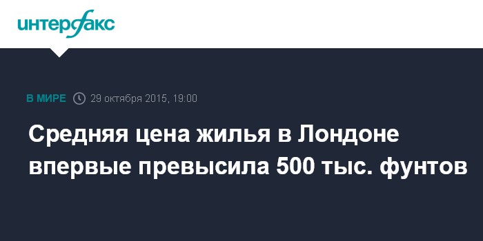 Москва. 29 октября. INTERFAX.RU - Средняя цена жилья в Лондоне впервые в истории превысила 500 тыс. фунтов стерлингов (более $750 тыс.), пишет The Financial Times со ссылкой на статистику Земельного кадастра.