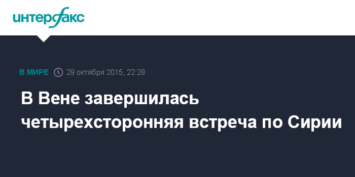 Москва. 29 октября. INTERFAX.RU - Переговоры министров иностранных дел РФ, США, Саудовской Аравии и Турции по сирийской проблематике завершились в Вене.