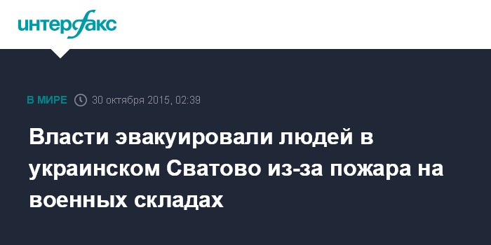 Москва. 30 октября. INTERFAX.RU - Людей эвакуируют из больницы и дома престарелых в городе Сватово Луганской области, где продолжается пожар на военных складах, готовится эвакуация жителей многоэтажек, сообщил глава Луганской областной военно-гражданской администрации Георгий Тука.