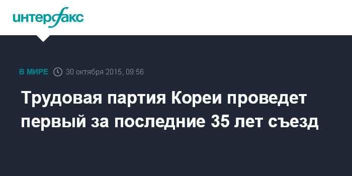Москва. 30 октября. INTERFAX.RU - Правящая в КНДР Трудовая партия Кореи (ТПК) проведет в мае 2016 года съезд - первый за более чем 35 лет, говорится в пятницу в заявлении Политбюро ЦК ТПК, распространенном по каналам корейского Центрального телеграфного агентства (ЦТАК).
