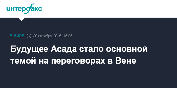 Москва. 30 октября. INTERFAX.RU - Ключевой темой проходящих в Вене переговоров по Сирии является судьба президента этой страны Башара Асада в политическом процессе урегулирования сирийского кризиса, заявил "Интерфаксу" источник в одной из западных делегаций.